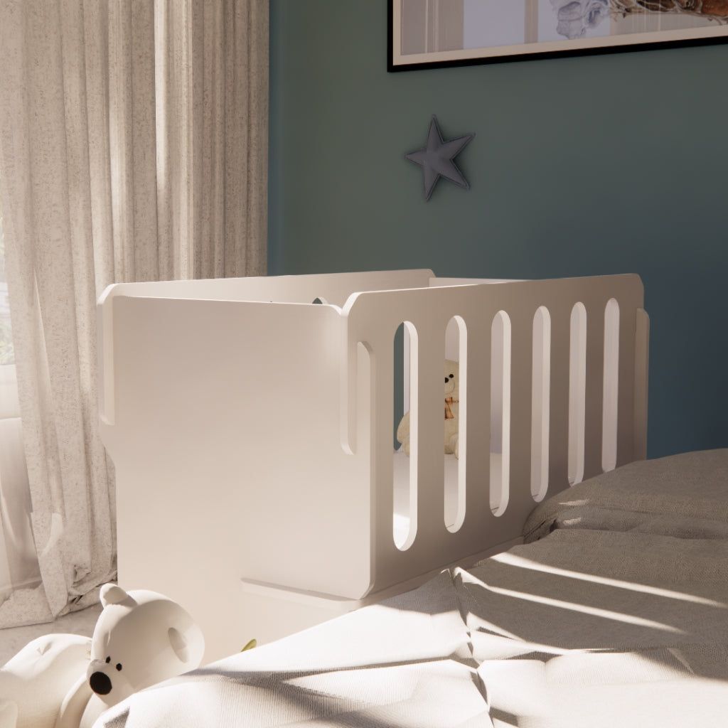 Un colecho de madera es una cuna o una extensión de cama diseñada para permitir que el bebé duerma cerca de los padres, pero en su propio espacio seguro, está construido con madera resistente y duradera para garantizar la estabilidad y la seguridad del bebé. Tiene un tamaño adecuado para adaptarse justo al lado de la cama de los padres, cuenta con una pared lateral removible, lo que facilita el acceso al bebé durante la noche y permite una mayor conexión y comodidad para la lactancia o para tranquilizar al bebé.