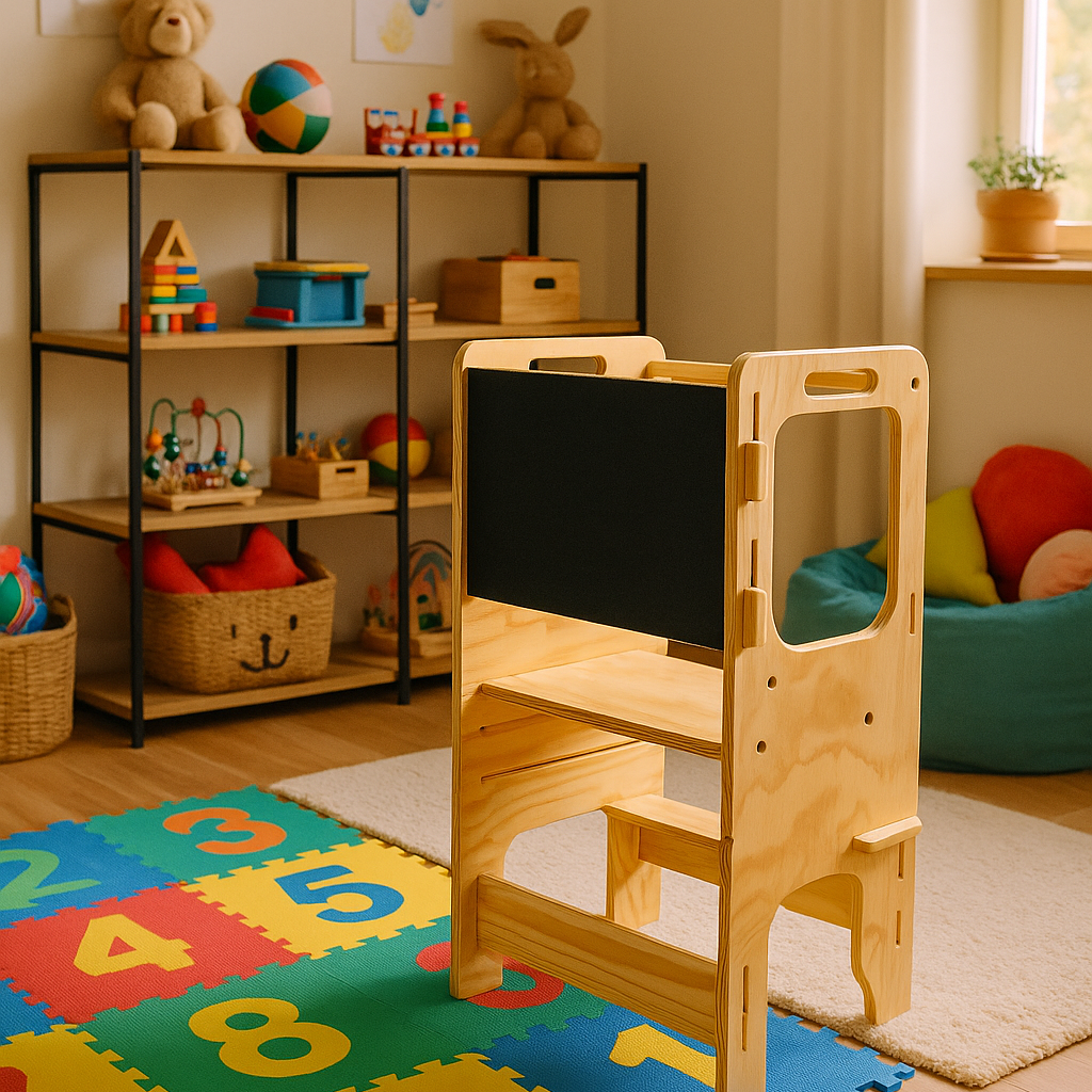 ¡Sube a nuevas alturas de aprendizaje! Esta torre multinivel de contrachapado es el compañero perfecto para los pequeños exploradores. Con su diseño escalonado, los niños pueden alcanzar la cocina, el lavabo o cualquier superficie a su altura, fomentando la independencia y la curiosidad. Segura, resistente y versátil, esta torre crece con tu hijo, transformando tareas cotidianas en aventuras de descubrimiento. ¡El aprendizaje nunca fue tan divertido!